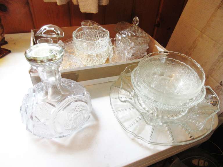 Group of Old Pattern Glass, Not Original Stopper in Decanter