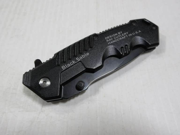 Black Sable Knife, Made in USA, Spring Assist Blade, Includes Belt Clip