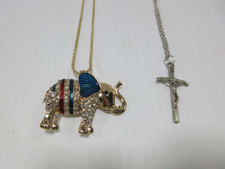 Elephant with 26" Chain and Cross Necklace with 28" Chain