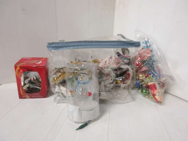 Christmas Ornaments, Include: (2) Stocking Holders, (2) Tree Toppers with a Few Older Marathon Ornaments, and a Bag of Older Ornaments