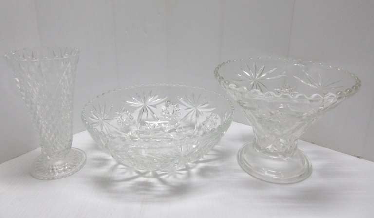 (3) Pieces of Cut Glass: 2- Bowls and 1- Diamond Cut Designed Vase