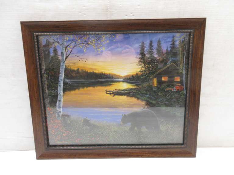 (4) Farm Scenery Wall Hangings, Reprints, 21"H; Apple Seated Stool, 22"H