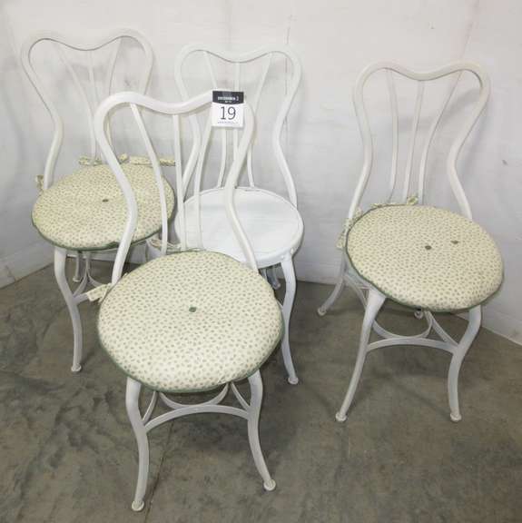 (4) Metal Base Wood Trimmed Cloth Kitchen Chairs