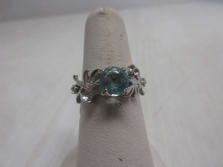 1 1/2 ct. Light Blue Stone Ring, Four Smaller Crystals, Silver Tone Band, Size 7
