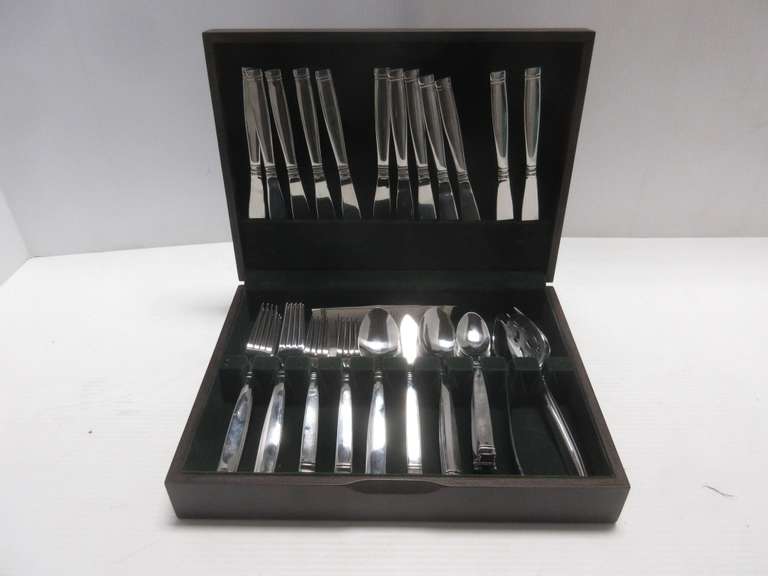 (65) Pieces of Cambridge Stainless Steel Silverware with Wood Case