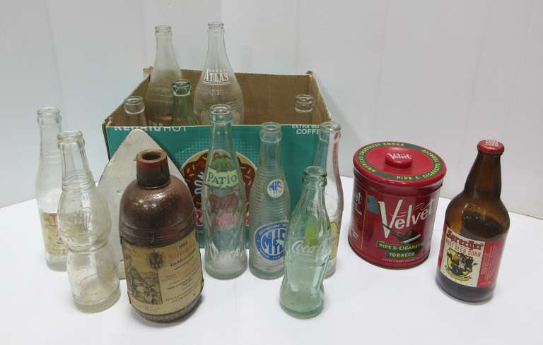 (12) Older Soda/Pop Bottles, Wine Bottle, and Tobacco Tin