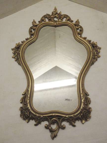 Antique Looking Mirror with Ornate Gold-Tone Edging