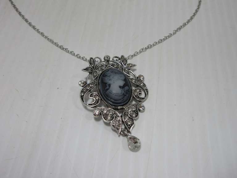 Silver-Tone Cameo Pendant on a 24" Silver-Tone Chain