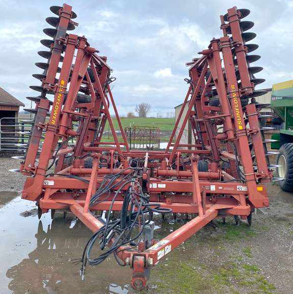 Sunflower 6432 Soil Finisher, 32', New 9" Hard Faced Knock-On Shovels, All New Spikes on 5-Bar Leveler, Rear Hitch and Hydraulic Lines, Good Condition