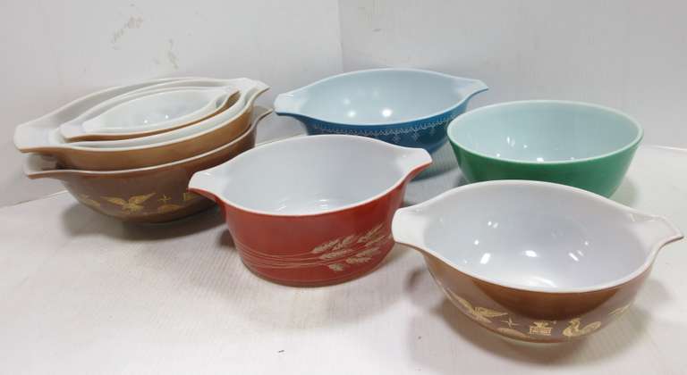 Set of (4) Pyrex "Nesting" Bowls with Clear Glass Bottoms
