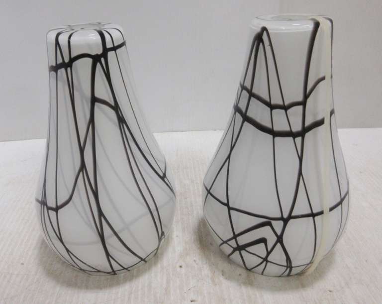 (2) White Glass with Black Marbling Globes for Hanging Light Fixture