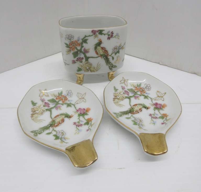 Japanese Tea Bag Holder, 2 1/2"H; (2) Spoon Rests, 3 1/2"L