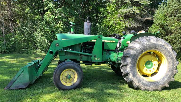 1973/1974 John Deere 2120 Tractor with John Deere 143 Front Loader, New Front Tires and Tubes, Voltage Regulator and the Starter Solenoid Need to be Replaced, Will Start with a Screw Driver, Approximately a year ago it started losing power in higher gears (seller spoke with a mechanic and it was suggested the clutch may be bad, but wasn't actually looked at). Bought from Hodges in Fenton Spring of 2017