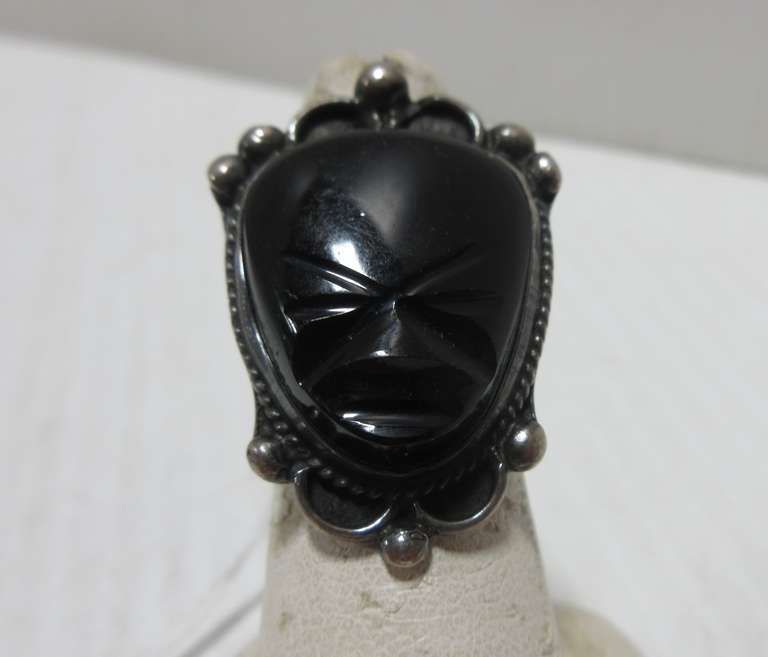Navajo Sterling Silver with 14K Gold Accents Around Onyx Stone, Ring Guard, Size 6