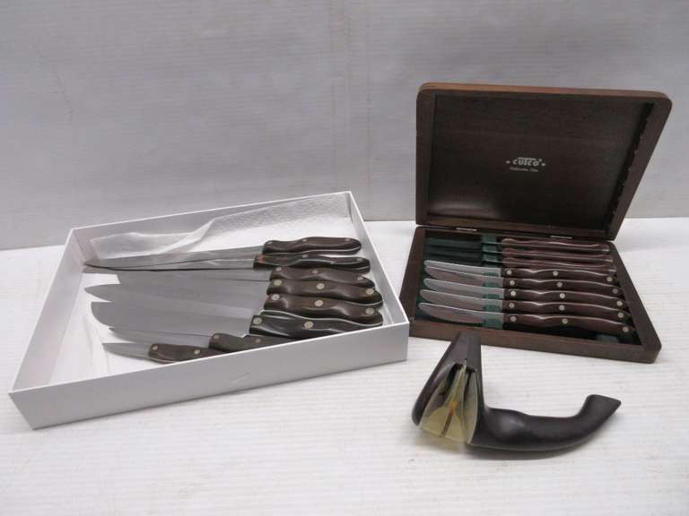 Cutco Brand Knife Set, and (8) Steak Knives in a Wooden Box