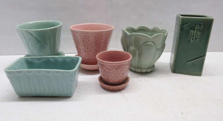 (6) Older Flower Pots, Include: 4- Green, and 2- Pink
