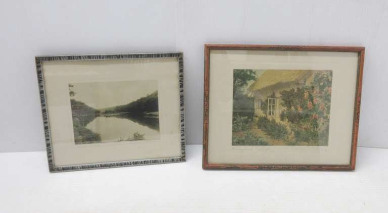 (2) Wallace Nutting Prints: 1- Nature Mirror, 12 3/4"W x 10 3/4"H; 1- Hollyhock Cottage, 14 3/4"W x 11 3/4"H