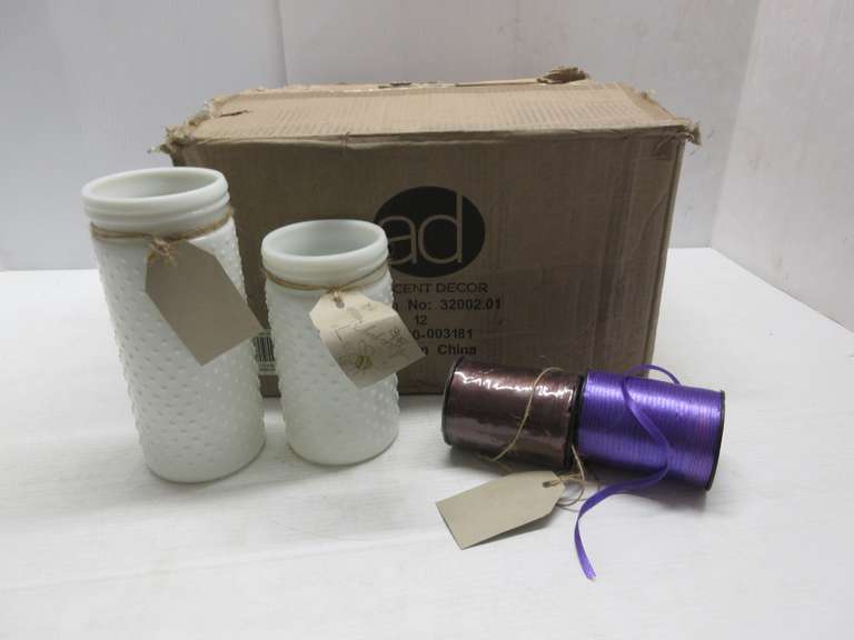 (11) Hobnail Vases with (3) Large Rolls of New Ribbon