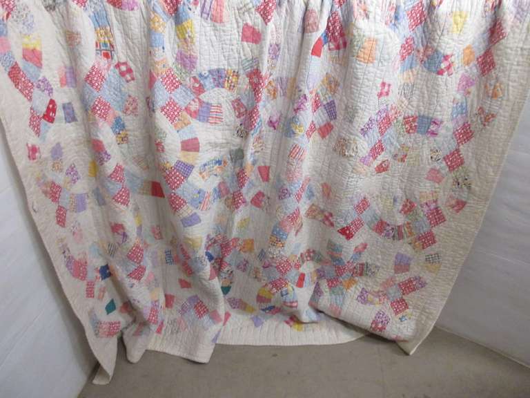 Vintage 1940s Handmade Quilt Using Feed Sack Fabric