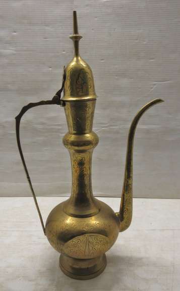Older Indian Brass Etched Jug/Coffee/Teapot