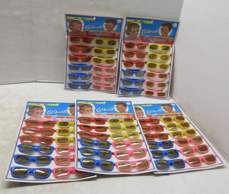 (5) Store Displays of Children Sunglasses, 12 on Each Card, Appear to be From the 1950s or 1960s