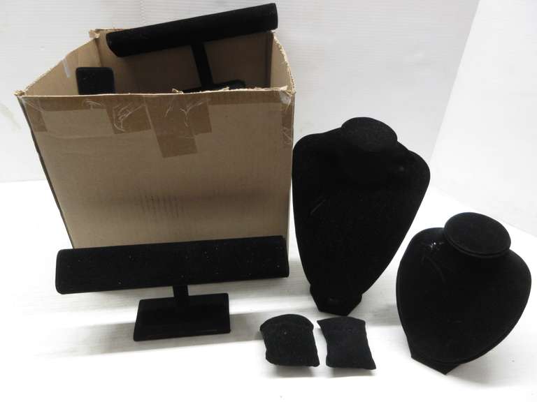 Black Velvet Jewelry Displays, Include: (5) Necklace Busts, Up to 11"H; (4) Bracelet Bars; (9) Pillows for Bracelets or Watches