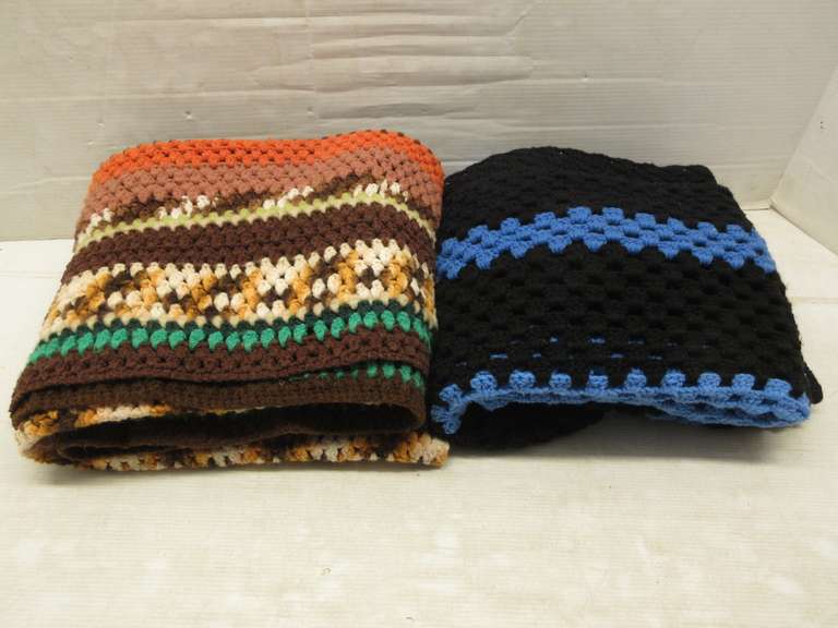 (2) Afghan Blankets: 1- Blue, 60" x 56"; 1- Brown, 60" x 50"