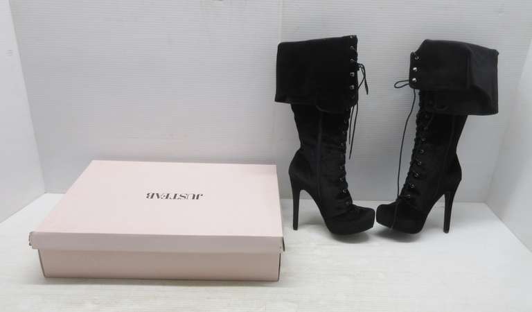 Pair of Womens Black Velvet Over the Knee High Boots/Heeled, Size 9