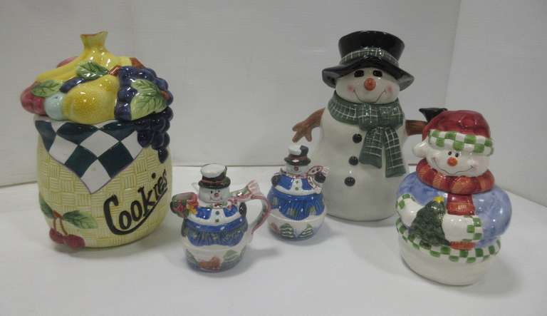 Set of (3) Cookie Jars: 2- Snowman; Snowman Creamer and Sugar