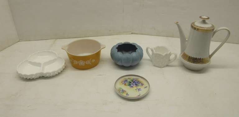 (7) Fenton Moonstone, Perfume, Candlestick Pair, Candy, and More