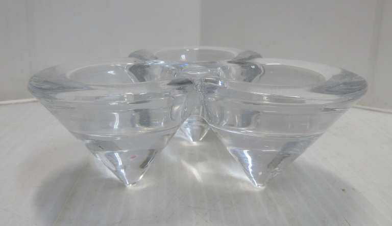 Pair of Tiffany & Co. Glass or Crystal Triangular Pedestals, Both Have Quotes from Famous Authors, Including: Robert Frost "Freedom Lies in Being Bold", 3 1/2"W x 6"H; Ralph Waldo Emerson, "So Far as a Man Thinks, He is Fine", 3 1/2"W x 5"H