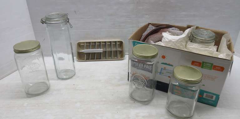 Golden Harvest Glass Containers, Glass Canisters, (2) Purple Bowls, and More