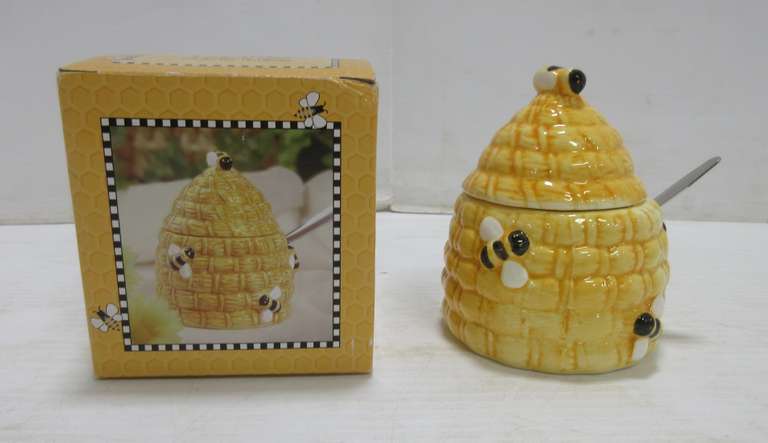1990s Honey Decanter Bee with Lid and Spoon in Original Box
