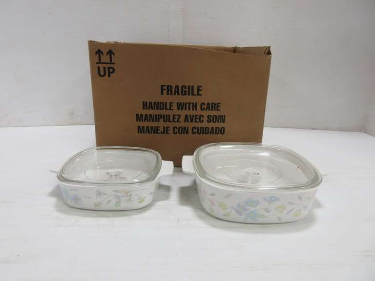 (2) Old Corningware Baking Dishes with Lids to Match, Range/Oven/Microwave Safe, Made in Corning, NY, USA: Two-Quarts, and One-Quart