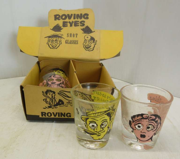 Set of (4) Roving Eyes Shot Glasses in Original Box
