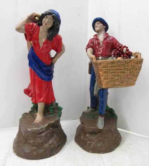 Marwal Chalkware Stamped Statues, Man and Woman Pair