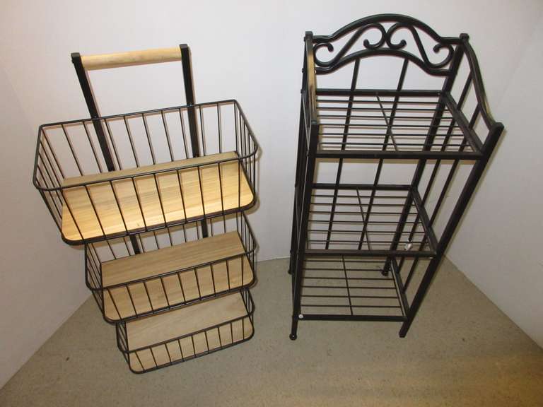 Set of (2) Metal and Wood Three-Tier Storage Organizing Shelves