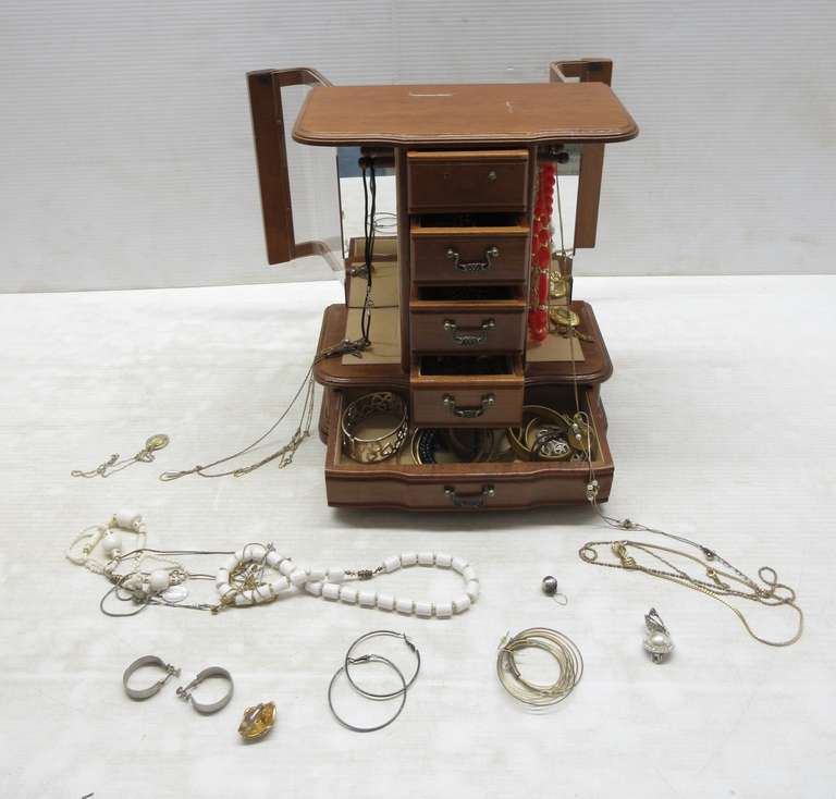 Five-Drawer Two-Door Jewelry Box Filled with Rings, Earrings, Bracelets, Brooches, and Necklaces
