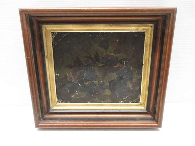 Very Old Oil Painting on Canvas of Blackberries, Placed in Antique Walnut Frame