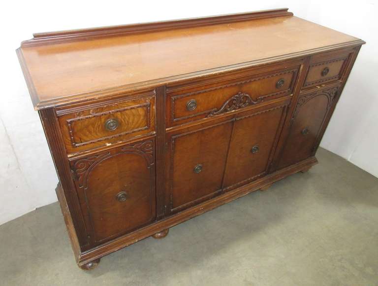 Antique Sideboard with Three Drawers and Four Doors, Foot Pieces in Top Drawer
