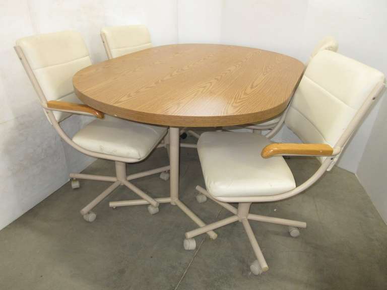 Table and (4) Chairs, All Chairs are Armed Chairs with Rolling Casters