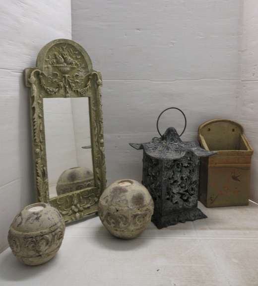 Mirror, 21"H; Ceramic Wall Pocket; (2) Candle Holders; Hanging Metal Candle Holders