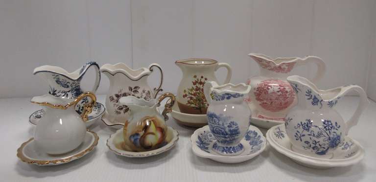 (8) Mini Pitchers and Basins, Including: Enesco, Japan, and More