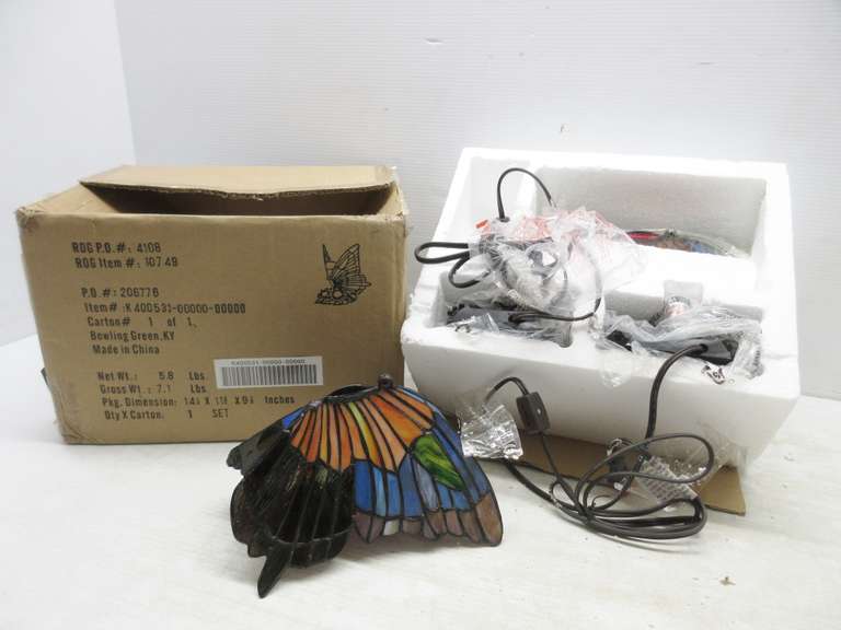 (2) Dalla Butterfly Stainless Glass Table Lamps