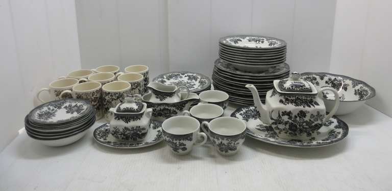 Contemporary Johnson Bros. Approx. Service for Eight or More, Black and White Pattern; (4) Black Mugs, and (4) Brown Mugs