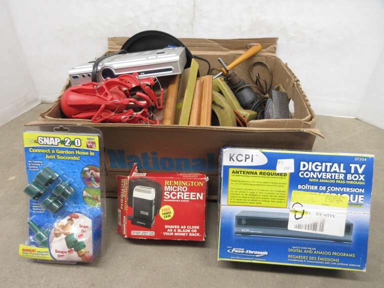 Kitchen Ware Items, Includes: 11" Round Cast Iron Skillet; 13"Dia Grill by Guy Fiers; 10" Square-Ribbed Skillet by Guy Fieri; 12" Plastic Punch Bowl; (3) Glass Storage Jars with Lids; Recipe Organizer, New; Roughneck Blue Tote with Lid, 16"W x 9"D x 22"L, Excellent