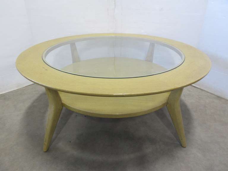Vintage Mid-Century Modern 1950s Round Wood Coffee Table with Glass Center Insert