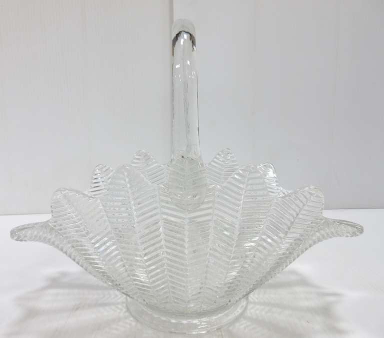Old Glass Fruit Bowl with Handle, Leaf Pattern