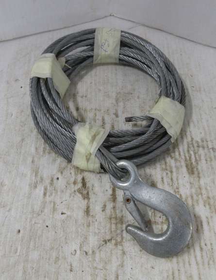 25' Steel Cable with Hook, Possibly 5/16 or 3/8 Cable