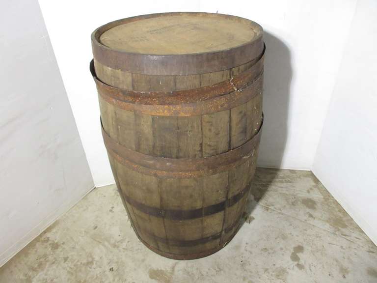 Large Oak Cask on Stand, No Visible Branding, Has Barrel Plug